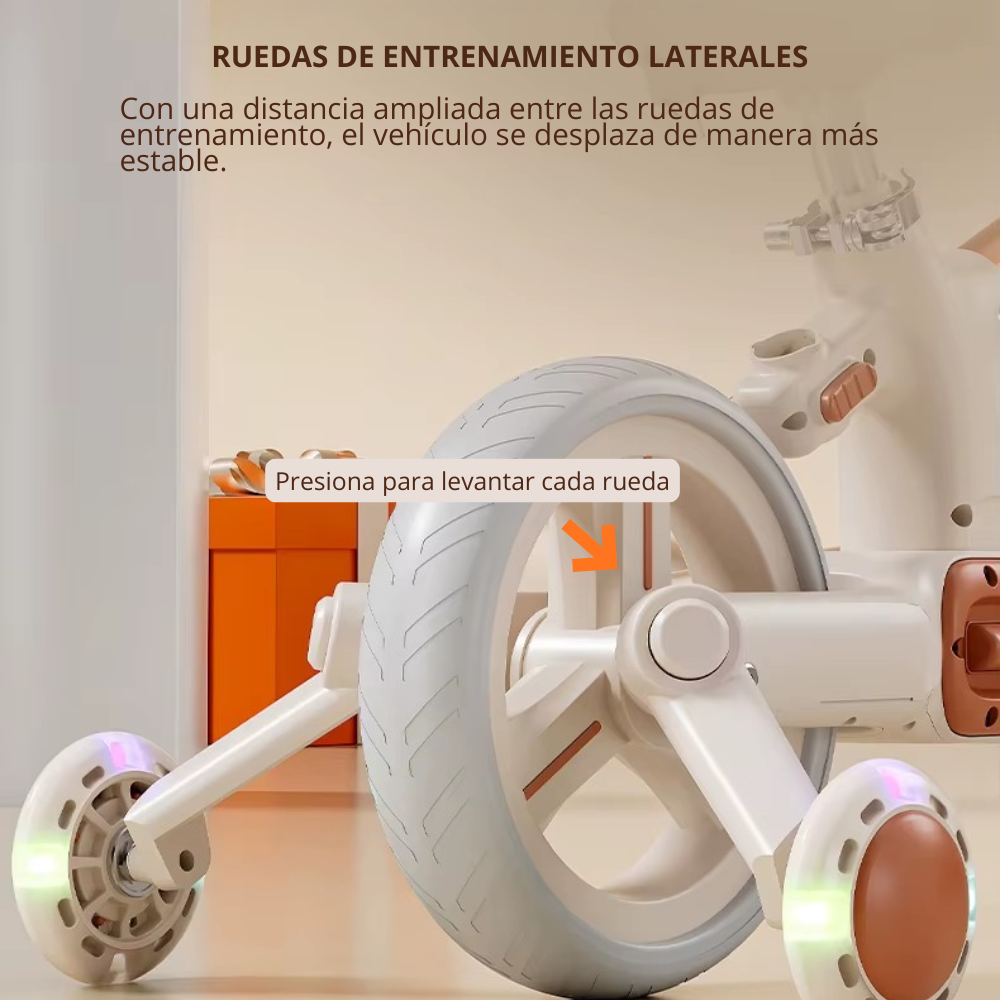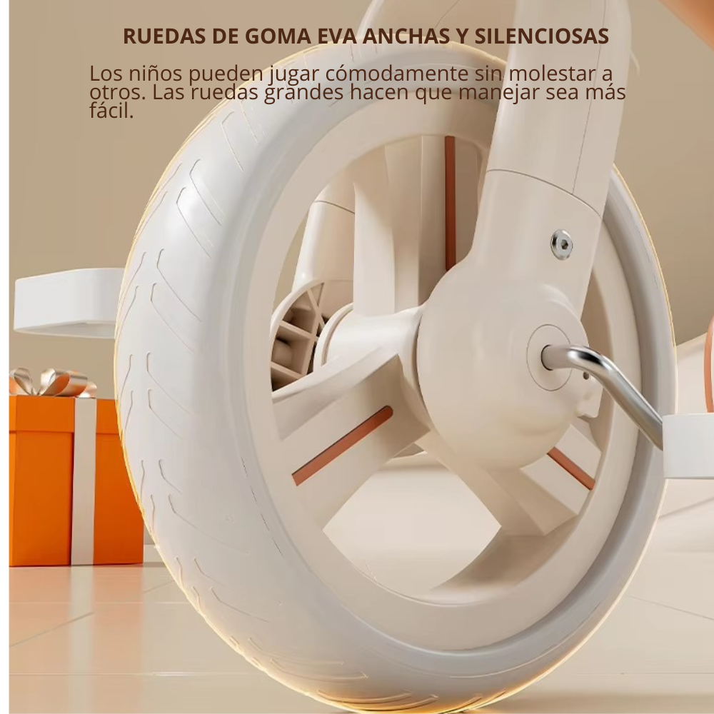 El primer paso hacia la independencia sobre ruedas. Este triciclo–balance bike ofrece estabilidad, seguridad y comodidad para acompañar a tu pequeño en sus primeras exploraciones. Su estructura ligera y resistente facilita el aprendizaje del equilibrio, mientras que sus ruedas anchas brindan un paseo firme y confiable.